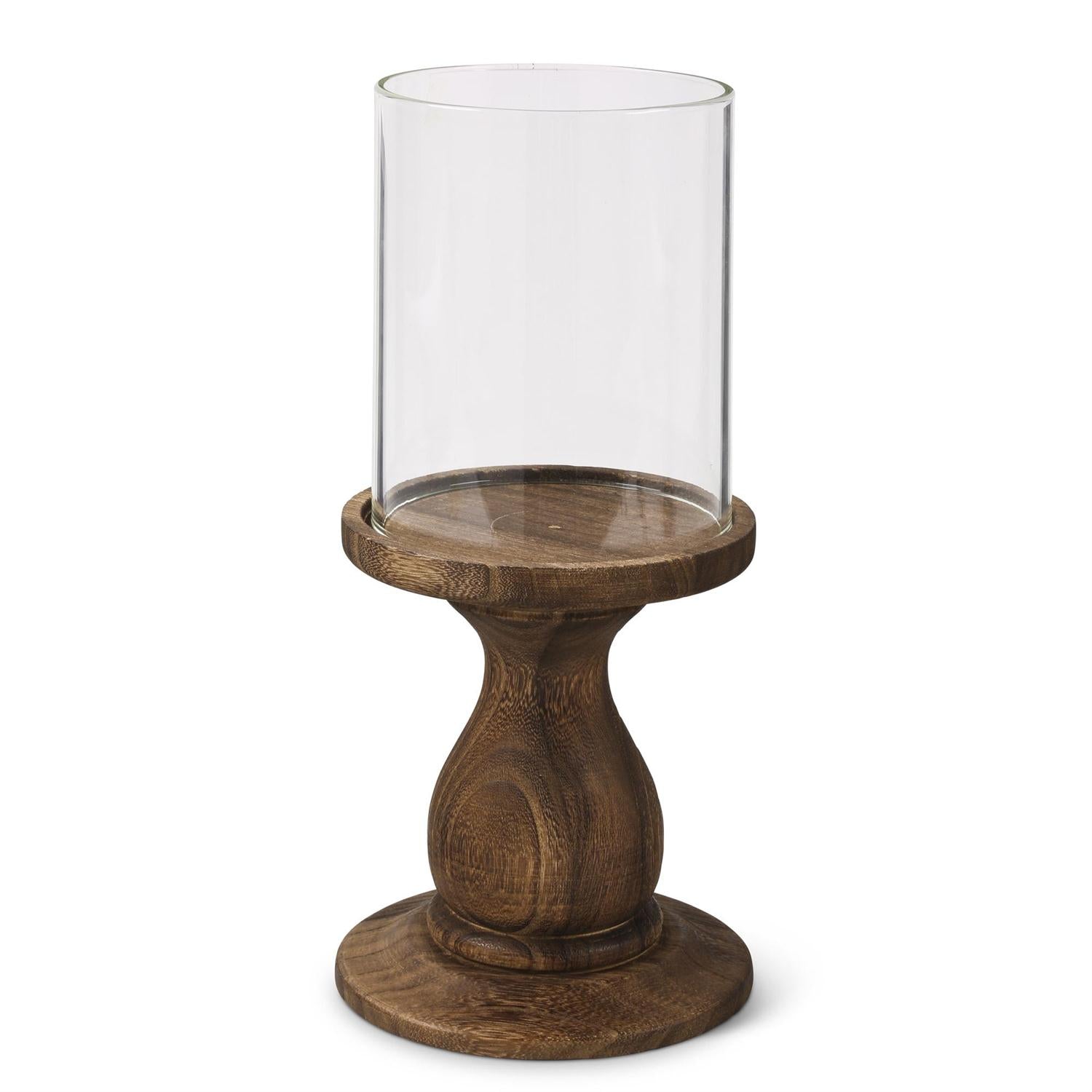 Large Glass Cylinders w/Wood Pedestal Candleholder