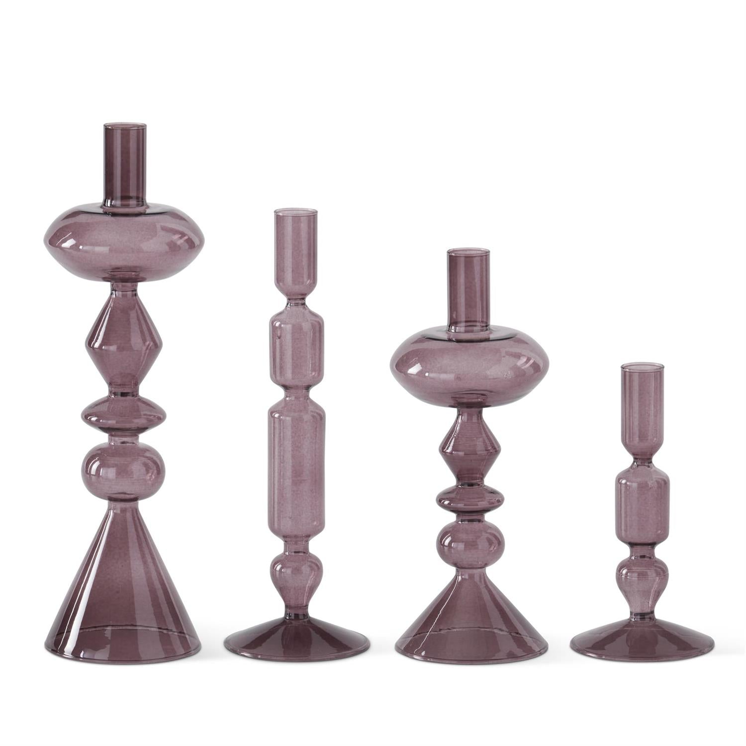 Set of 4 Handcrafted Purple Glass Modern Taper Cand